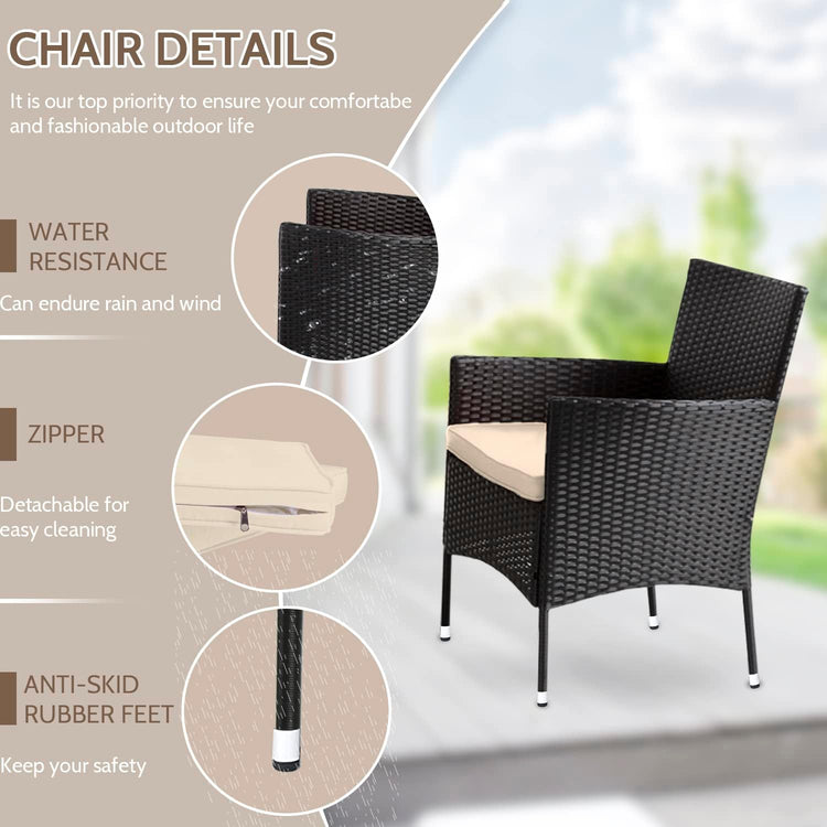 ✔ Strong and Sturdy: Made with a powder-coated steel frame and all-weather PE rattan wicker, this patio furniture set offers both comfort and durability. The lightweight yet sturdy wicker is paired with removable seat cushions for easy cleaning.