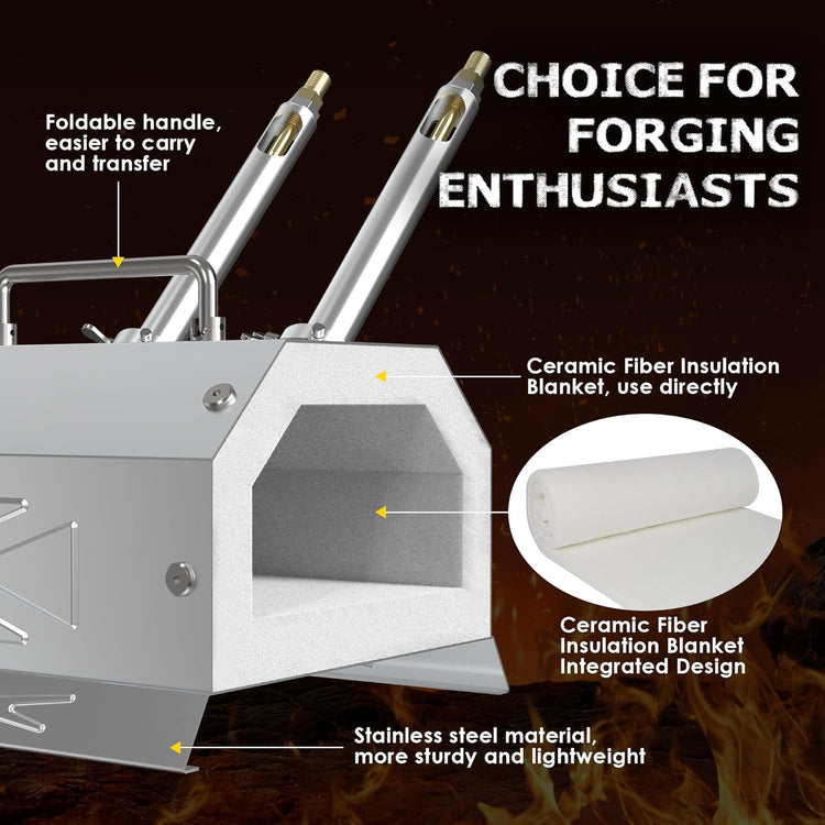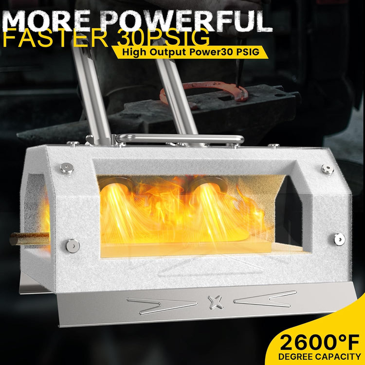 Propane Blacksmith Forge Kit with Dual Burners and 30PSI Regulator, Made of Stainless Steel