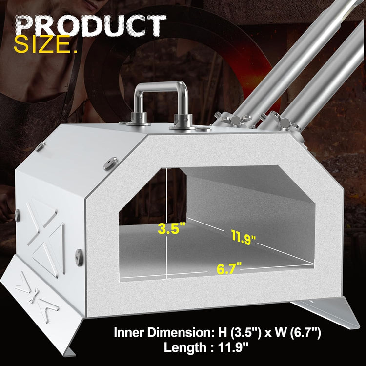Durable Build: Constructed from high-quality stainless steel, this forge supports a burner nozzle pressure range of 0-30 PSI, reaching temperatures up to 2500°F for efficient metalworking