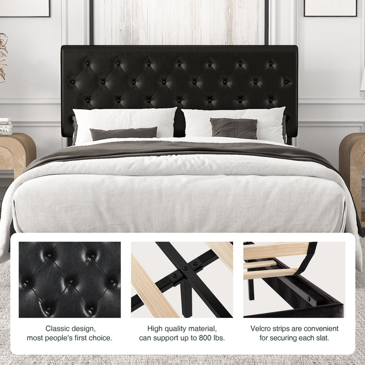 Bed Frame with Adjustable Headboard, Diamond Button Tufted Style, Black