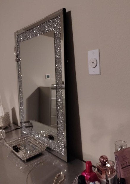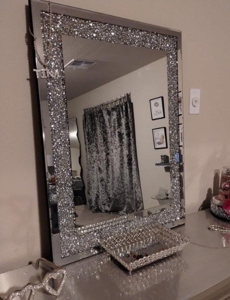 - CRAFT: This is a mirror with crystal decor, a circle of crush diamonds, The shining mirror covered the diamonds and is very easy to clean. It's really cute and gorgeous.