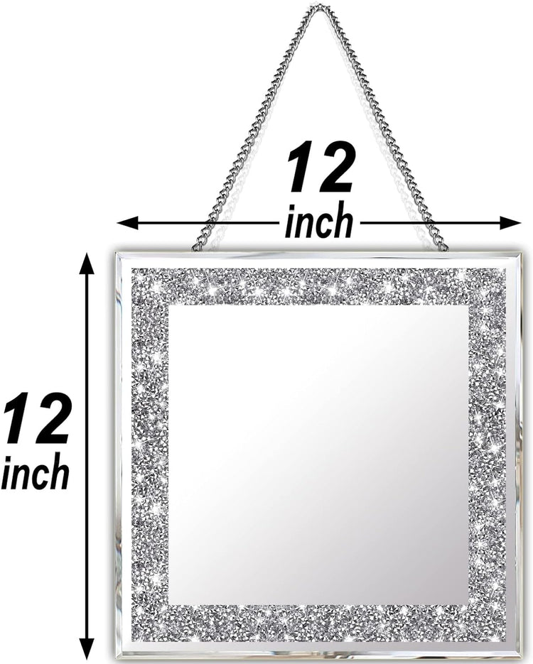 2 Piece Wall Mirrors, Crush Diamond Mirrors Decor, Silver Decorative for Living Room Bedroom, Bathroom. (12”x12”)